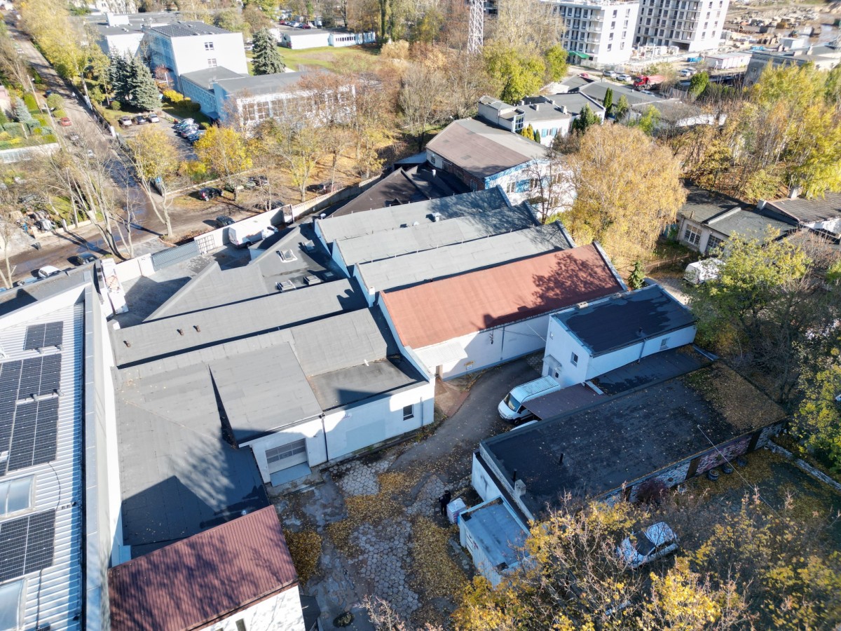 - Budynek podzielony na różnorodne pomieszczenia produkcyjne, magazynowe, warsztatowe i socjalne.