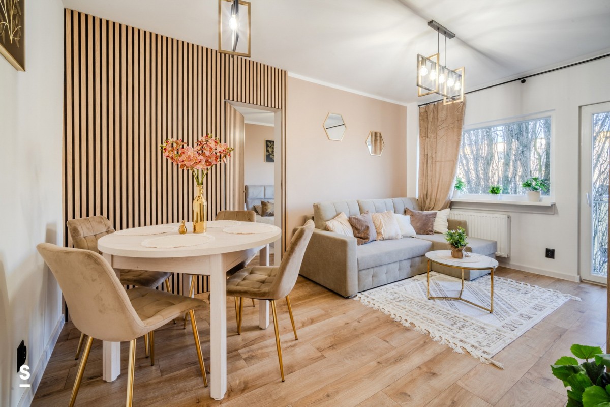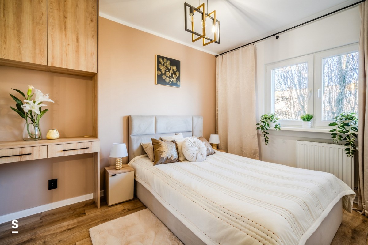 Wchodząc do mieszkania, od razu odczujesz jego wyjątkową atmosferę. Naturalna paleta barw oraz estetyczny projekt stanowi o wyjątkowości tego mieszkania. Zaskakujący ok początku układ w którym poza przedpokojem prowadzącym do osobnej kuchni oraz salonu z balkonem nie zabrakło nawet wchodzonej garderoby w niecodziennie ukrytej sypialni. Dodatkowo w pełni umeblowane i wyposażone mieszkanie wzbogacone jest o oświetlenie zapewniające odpowiednią atmosferę. Jeśli marzysz nietuzinkowym mieszkanie w spokojnej okolicy, ta nieruchomość jest dla Ciebie.