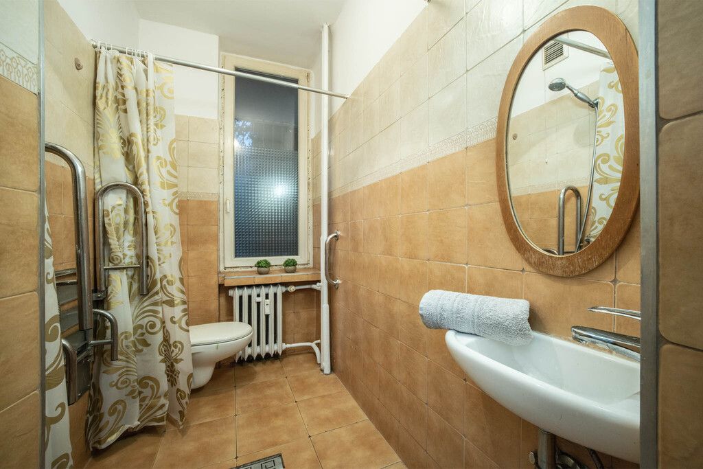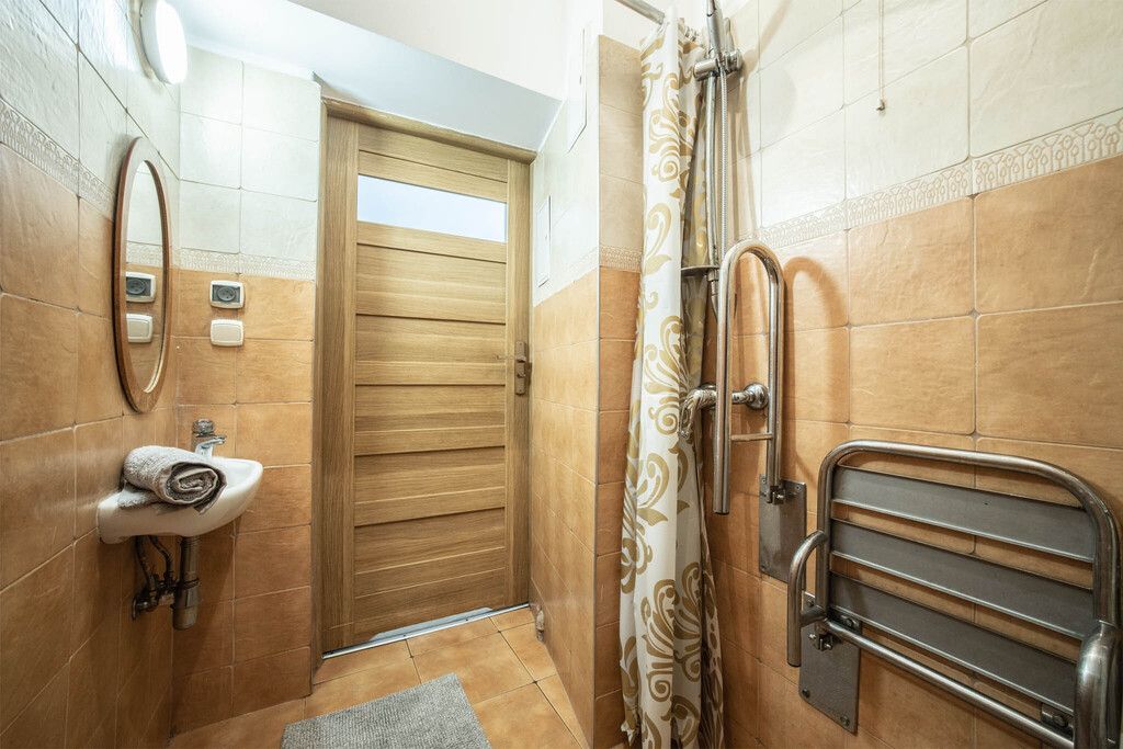 - Łazienka: Przystosowana dla osób niepełnosprawnych z możliwością przerobienia do poprzedniego standardu.