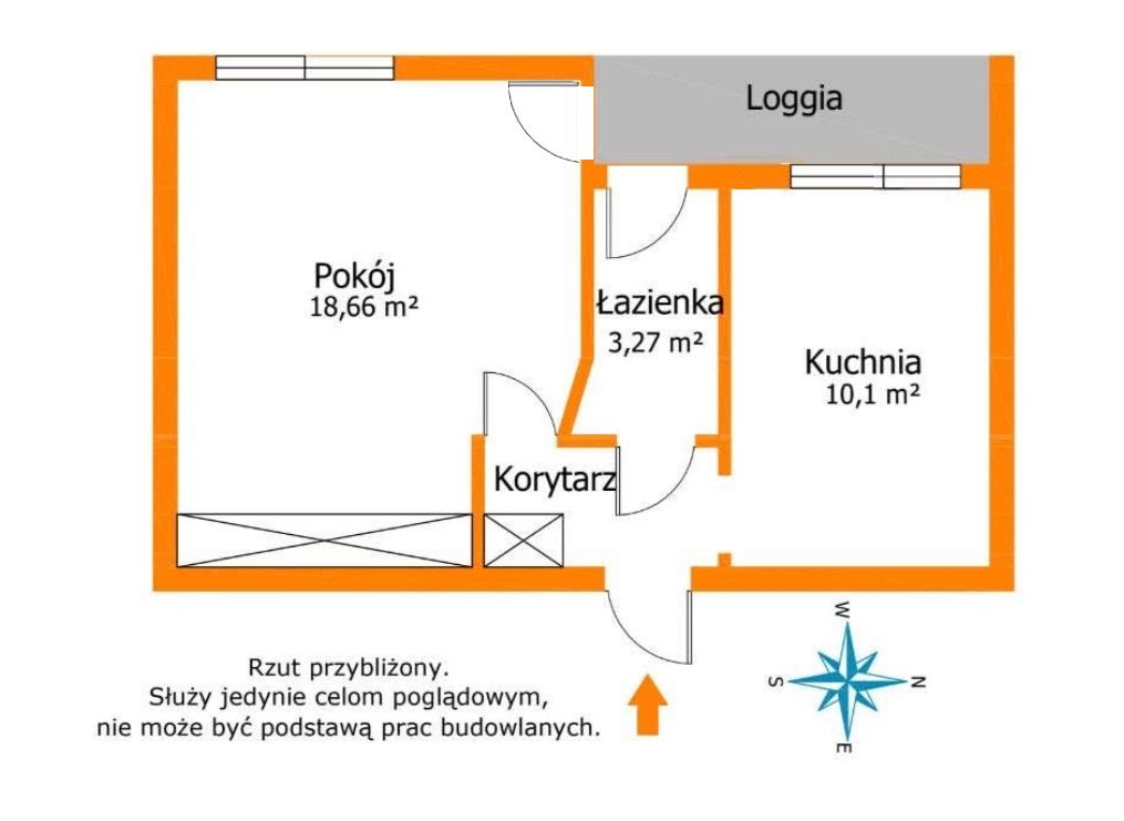 - Pokój (prawie 20m2): Przestrzeń, w której dzięki pojemnej szafie zmieścisz wszystko, a i tak zostanie Ci mnóstwo miejsca na relaks. Z pokoju jest wyjście na ok. 4,5-metrową loggię z ekspozycją na stronę zachodnią.