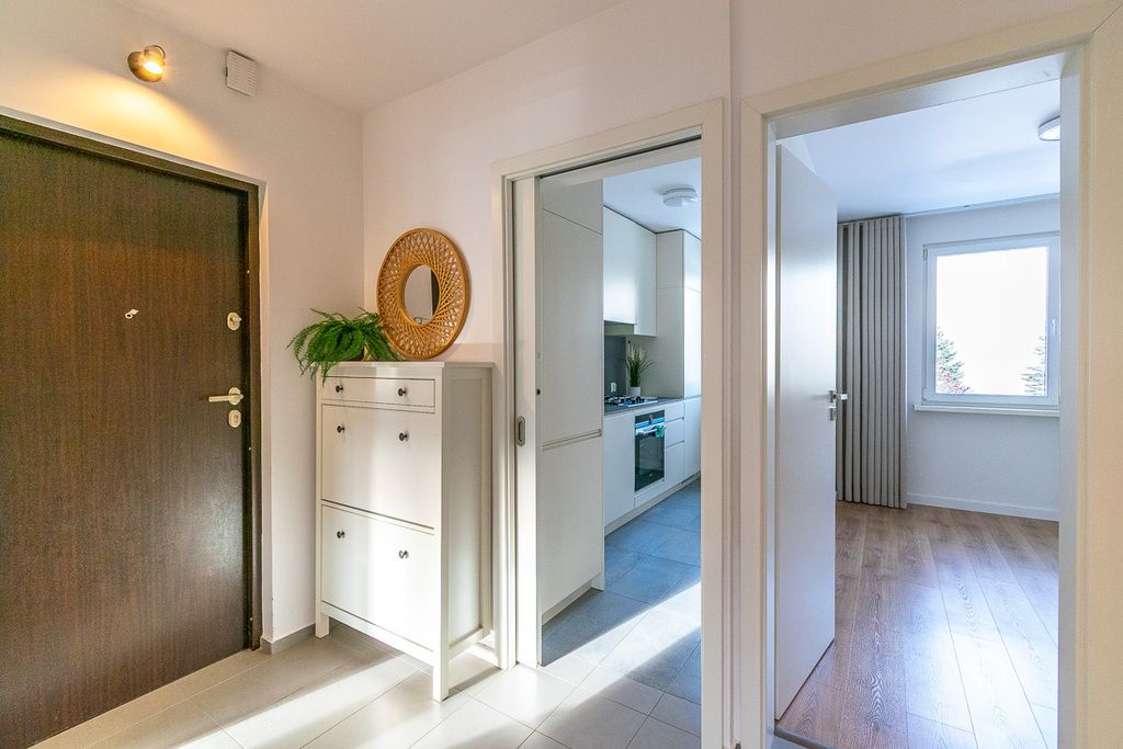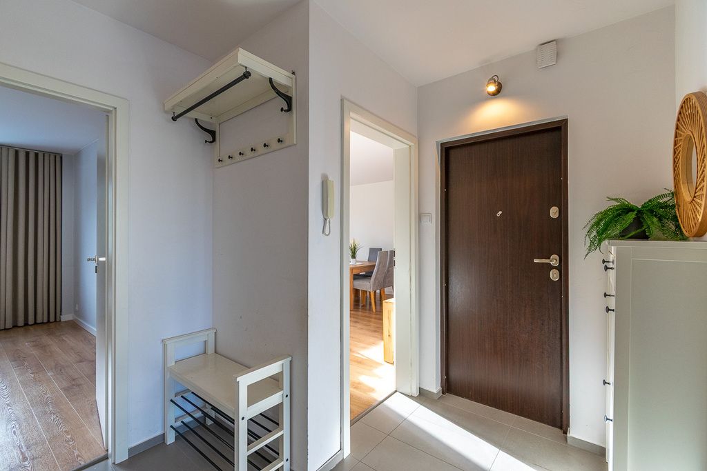 Oferujemy do wynajęcia komfortowe mieszkanie zlokalizowane na Bałutach przy ulicy Nastrojowej, w zacisznej osiedlowej uliczce z niskim ruchem samochodowym. Ta doskonała lokalizacja zapewnia łatwy dostęp do wszelkich udogodnień: w pobliżu znajdują się park, plac zabaw, szkoła, przedszkole oraz żłobek. Na wyciągnięcie ręki są także apteki, przychodnia lekarska, restauracje oraz centrum handlowe, co czyni to miejsce idealnym dla rodzin.